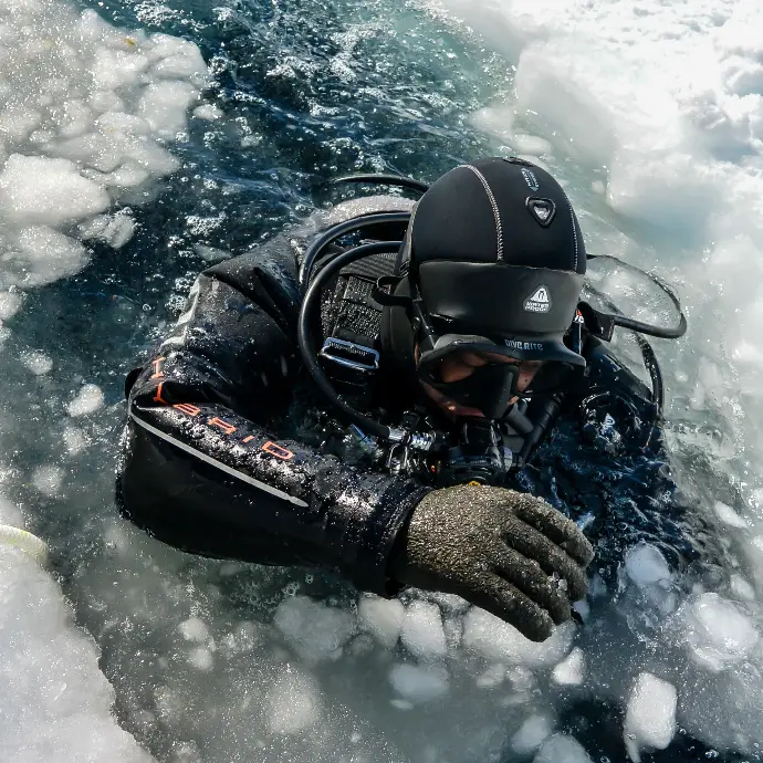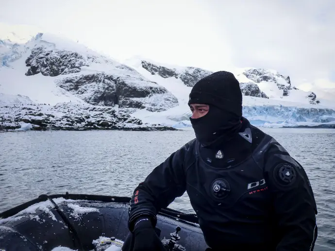Los buceadores deben tener experiencia en aguas frías con traje seco. Nuestro objetivo es realizar una o dos inmersiones al día (una por la mañana y otra por la tarde). Nuestra capacidad para bucear depende del hielo local y de las condiciones meteorológicas. Todos los guías de buceo están titulados y son expertos en su campo. Los buceadores deben traer su equipo personal. A bordo: botellas, compresores y plomos. Realizamos inmersiones desde embarcaciones Zodiac.